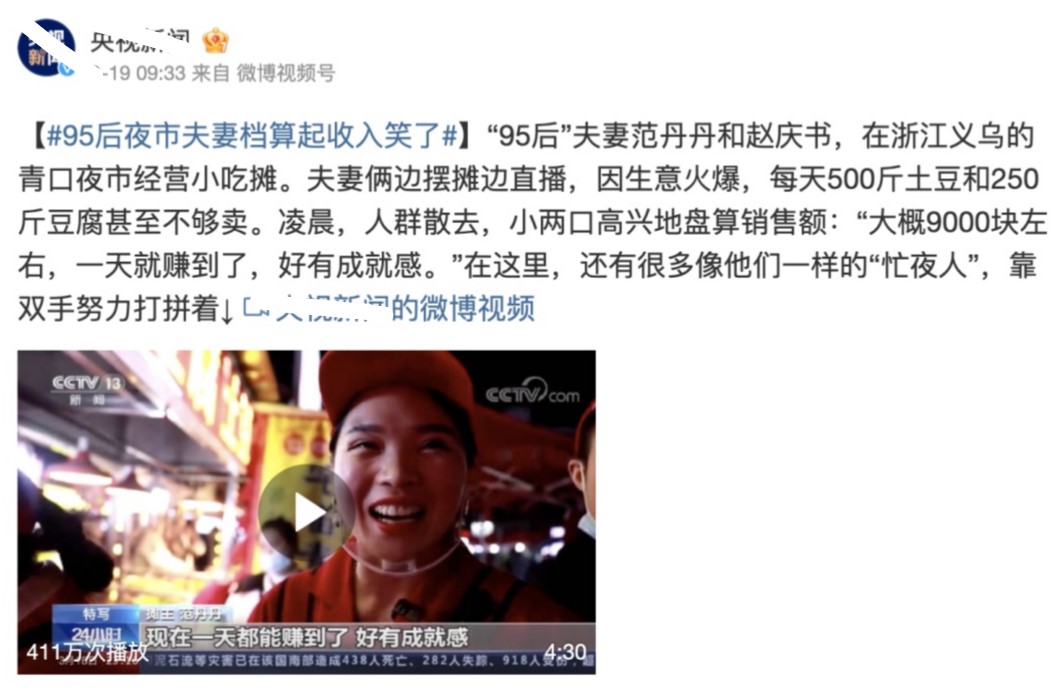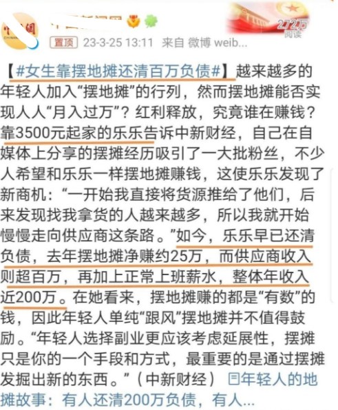 “护士兼职摆地摊两周赚1万5后全职开店”、“95后夜市夫妻档算起收入笑了”等相关话题屡屡登上热搜。