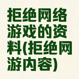 所在位置: 首页 > 专题 > 拒绝网络游戏的资料(拒绝网游内容)