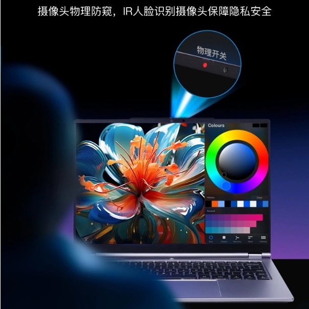 无界14X 锐龙版高性能轻薄本除了有一颗具备物理开关的高清摄像头外,还配备了IR人脸识别摄像头,可用于Windows Hello功能,开机免去输入密码识别人脸即可完成登录系统。